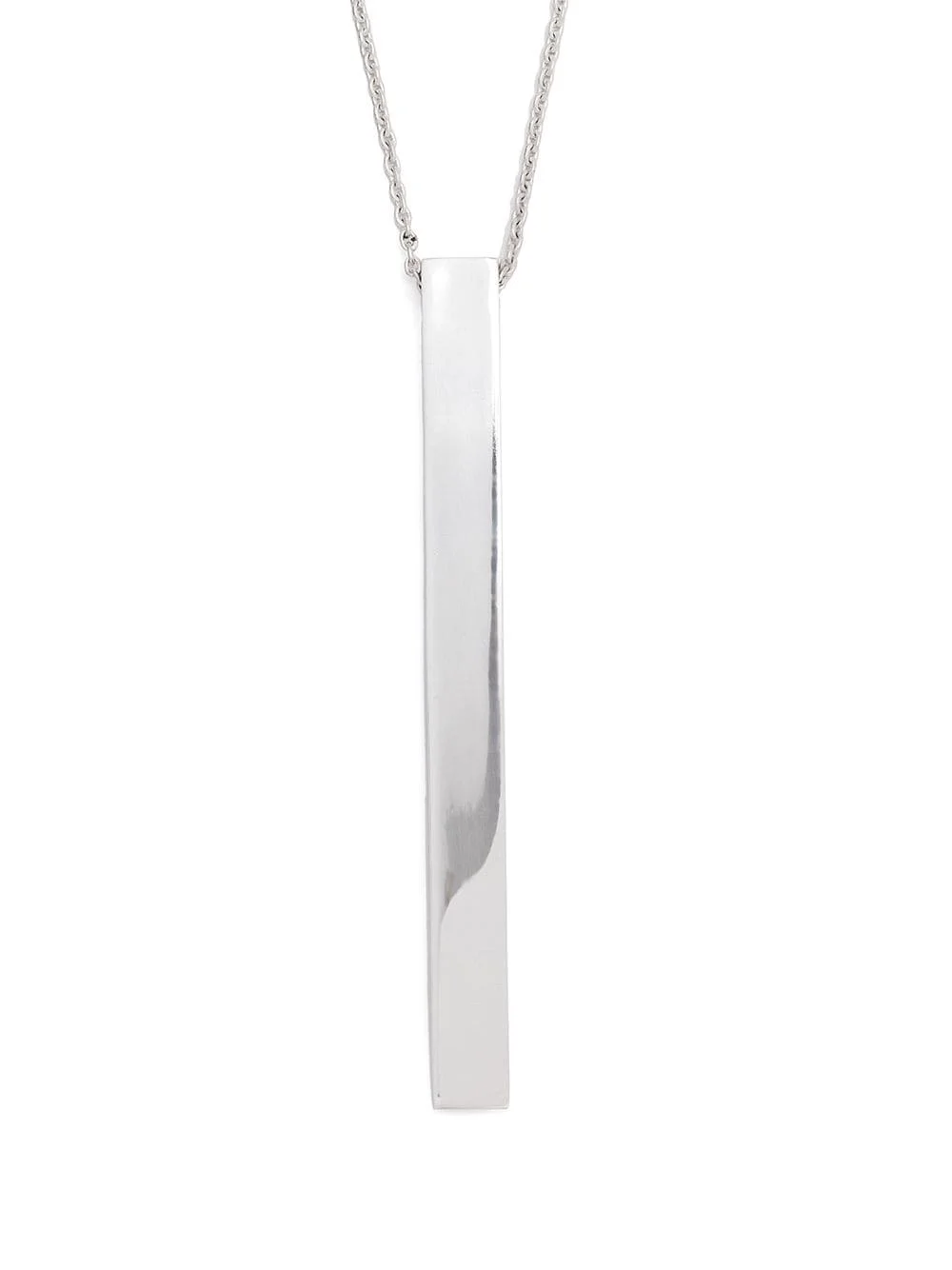 giant wedge necklace silver-tone sterling silver polished finish distressed effect oversize pendant engraved logo cable-link chain toggle fastening Imported SIZE & FIT Model measurements Height 6 ft 1 in(1.85 m) Bust/Chest 37.79 in(96 cm) Hips 37.4 in(95 cm) Waist 30.7 in(78 cm) Measurement Length when open 29.52 in(75 cm) PENDANT LENGTH 5.9 in(15 cm) PENDANT WIDTH 0.59 in(1.5 cm) WIDTH 0.11 in(0.3 cm)
