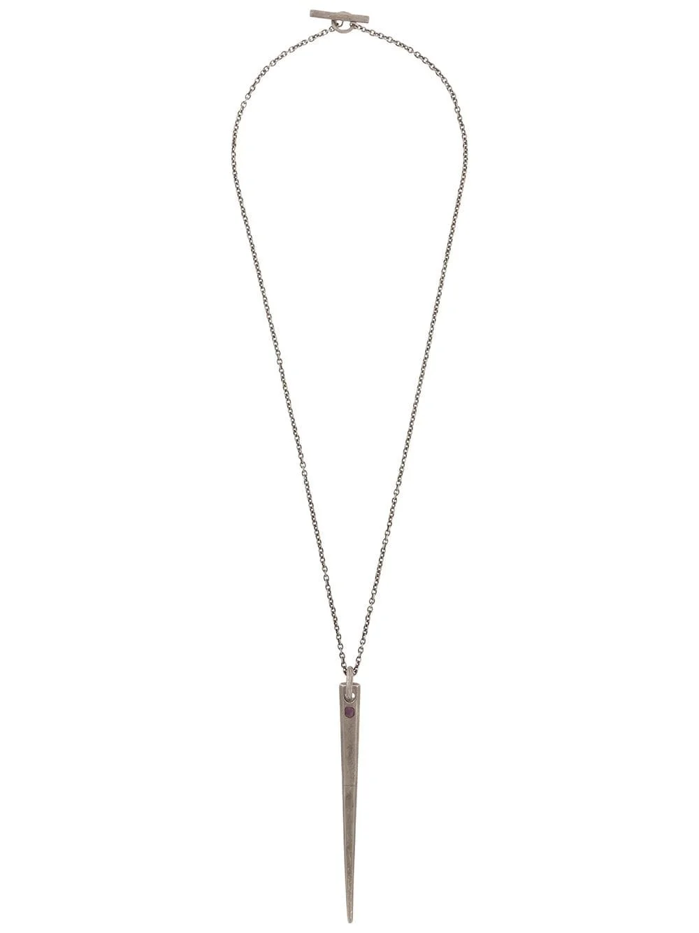 large spike pendant necklace silver-tone sterling silver spike pendant ruby accent delicate chain rear toggle fastening Imported SIZE & FIT Model measurements Height 6 ft 1 in(1.86 m) Bust/Chest 35.43 in(90 cm) Hips 35.43 in(90 cm) Waist 29.92 in(76 cm)