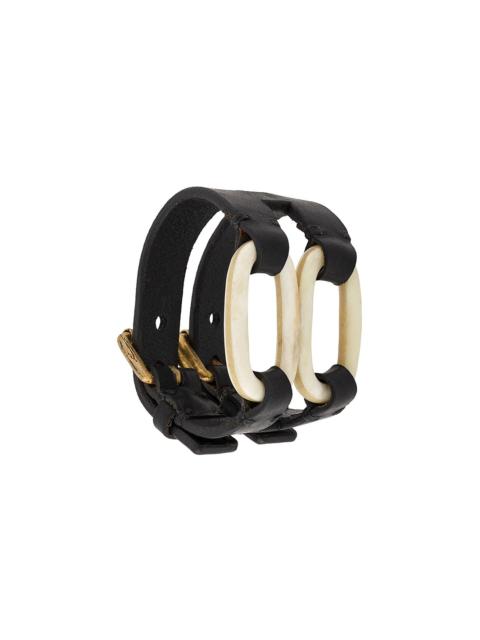 link gauntlet bracelet Black buffalo bone link gauntlet bracelet from Parts of Four featuring a double-buckle fastening. Imported SIZE & FIT Model measurements Height 6 ft 1 in(1.86 m) Bust/Chest 37.4 in(95 cm) Hips 37 in(94 cm) Waist 30.7 in(78 cm)