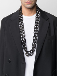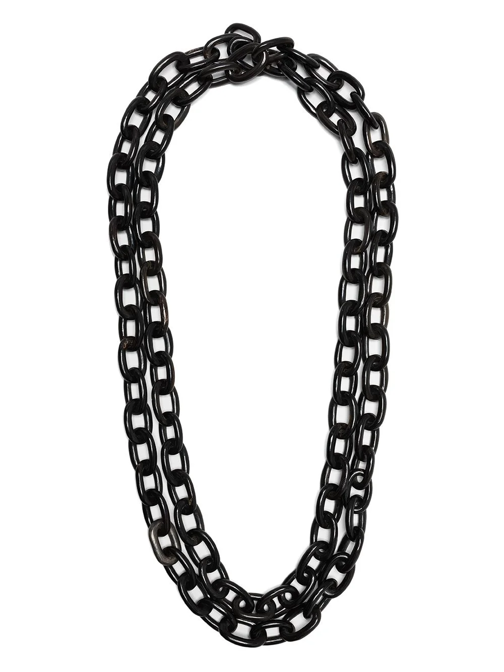 organic link chain black/silver-tone chunky chain silver-tone hardware buffalo horn detailing slip-on style Imported SIZE & FIT Model measurements Height 6 ft 1 in(1.85 m) Bust/Chest 37.79 in(96 cm) Hips 37.4 in(95 cm) Waist 30.7 in(78 cm)