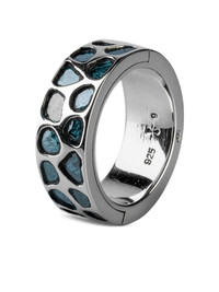 pave-set slab ring Highlights - Teal - Sterling silver - Pave setting - Blue diamond slabs - Geometric pattern - Hinged design Imported SIZE & FIT Measurement Band Width 0.35 in(0.9 cm) CIRCUMFERENCE 0.74 in(1.9 cm)