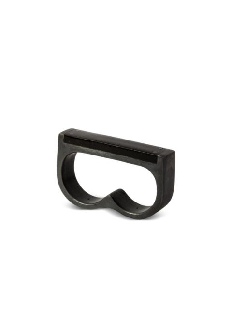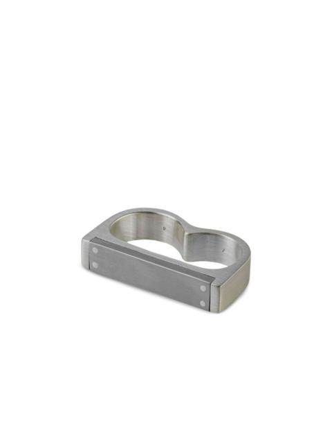 Plate Double ring Highlights - Silver-tone - Sterling silver/stainless steel - Rectangular plate - Brushed finish - Two-finger design Imported SIZE & FIT Measurement Band Width 0.35 in(0.9 cm)