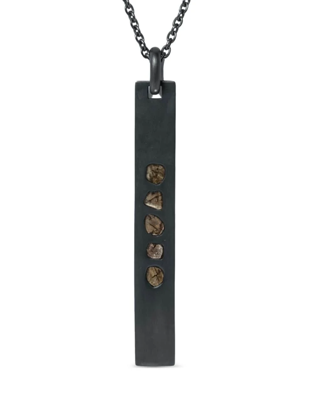 Plate necklace Highlights - Black - Oxidised sterling silver - Cable-link chain - Rectangle pendant - Inset gemstones - Brown diamonds totalling 1.8ct - T-bar fastening - Normal everyday use and external agents may reduce the lustre of gemstones and gold surfaces. to maintain, use specific, non-abrasive products specially meant for cleaning jewellery. Imported SIZE & FIT Measurement Length when open 29.13 in(74 cm) PENDANT LENGTH 4.01 in(10.2 cm) PENDANT WIDTH 0.55 in(1.4 cm)