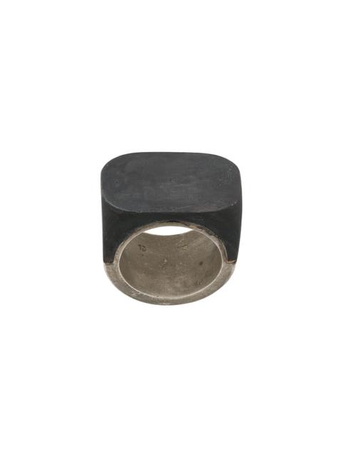 Sistema Oval sterling silver ring Highlights - Sterling silver - Flat band - Two-tone design - Engraved detail - Raised bridge - Polished finish - Acid wash finish - Ring band thickness 3mm Imported