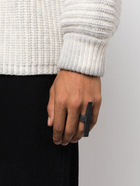Sistema rotated bridge ring anthracite grey oxidised sterling silver brushed effect chunky band slip-on style Imported SIZE & FIT Model measurements Height 6 ft 2 in(1.87 m) Bust/Chest 38.18 in(97 cm) Hips 36.61 in(93 cm) Waist 29.13 in(74 cm) Measurement CIRCUMFERENCE 2.32 in(5.9 cm) Feature Width 0.35 in(0.9 cm) Band Width 0.11 in(0.3 cm) Feature Length 2.75 in(7 cm)