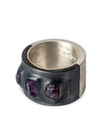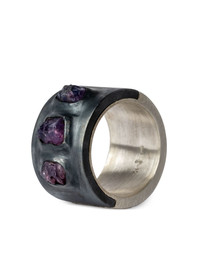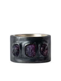 Sistema sapphire sterling-silver ring Highlights - Black/silver tone - Oxidised sterling silver - Sterling silver - Flat band - Inset gemstones - Purple winza sapphires - Engraved detail - Oxidised finish - Matte finish - Normal everyday use and external agents may reduce the lustre of gemstones and gold surfaces. to maintain, use specific, non-abrasive products specially meant for cleaning jewellery. Imported