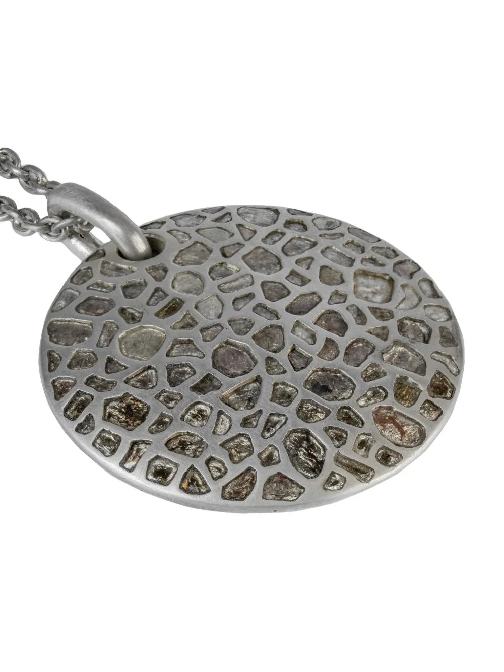 sterling silver Disk diamond necklace Highlights - Silver - Sterling silver - Pave diamond setting - Irregular diamond shapes - Normal everyday use and external agents may reduce the lustre of gemstones and gold surfaces. to maintain, use specific, non-abrasive products specially meant for cleaning jewellery. Imported SIZE & FIT Measurement Length when open 29.13 in(74 cm)