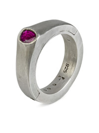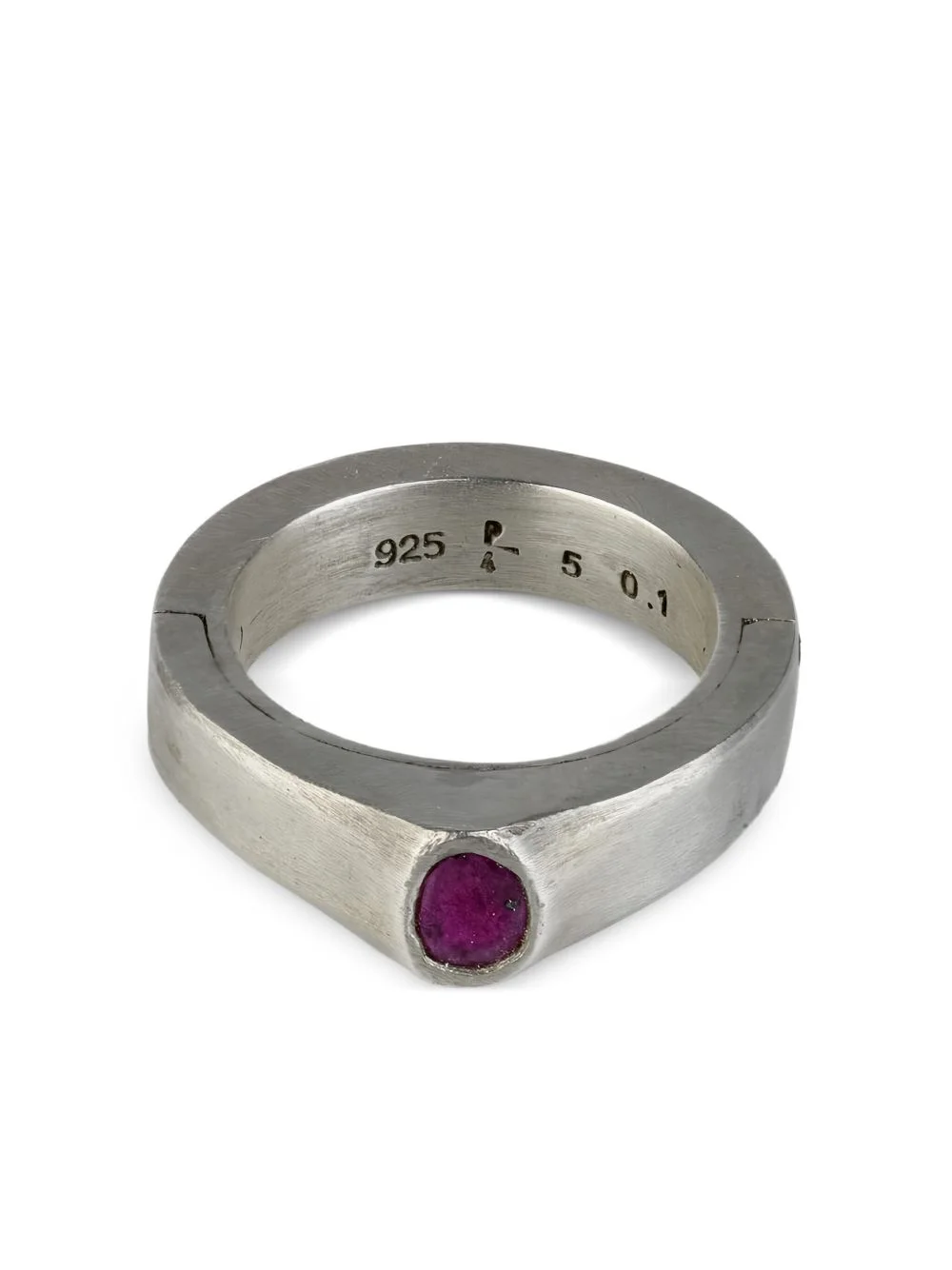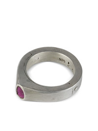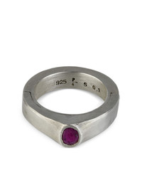 Stigma ruby-set silver ring Highlights - Silver-tone - Sterling silver - Bazel-set cabochon-cut ruby totaling 0.1 carats - Flat band - Normal everyday use and external agents may reduce the lustre of gemstones and gold surfaces. to maintain, use specific, non-abrasive products specially meant for cleaning jewellery. Imported SIZE & FIT Measurement Band Width 1.73 in(4.4 cm) CIRCUMFERENCE 0.74 in(1.9 cm)
