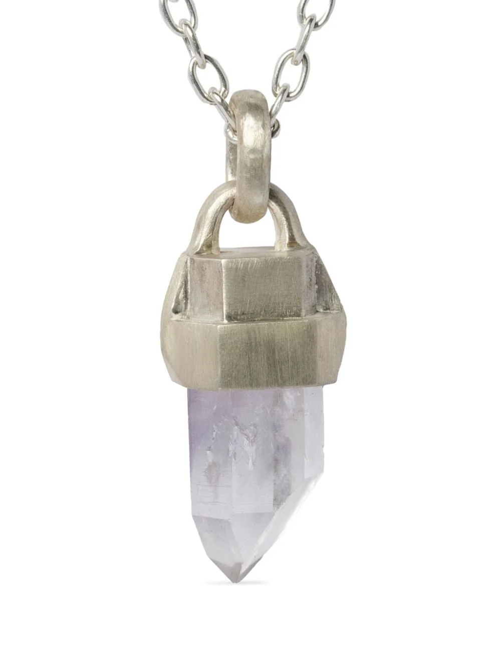 Talisman amethyst pendant necklace Highlights - Silver - Sterling silver - Matte finish - Rolo chain - Gemstone pendant - Amethyst stone - Toggle fastening - Normal everyday use and external agents may reduce the lustre of gemstones and gold surfaces. to maintain, use specific, non-abrasive products specially meant for cleaning jewellery. Imported SIZE & FIT Measurement Length when open 29.13 in(74 cm) PENDANT LENGTH 2.83 in(7.2 cm) PENDANT WIDTH 1.02 in(2.6 cm)