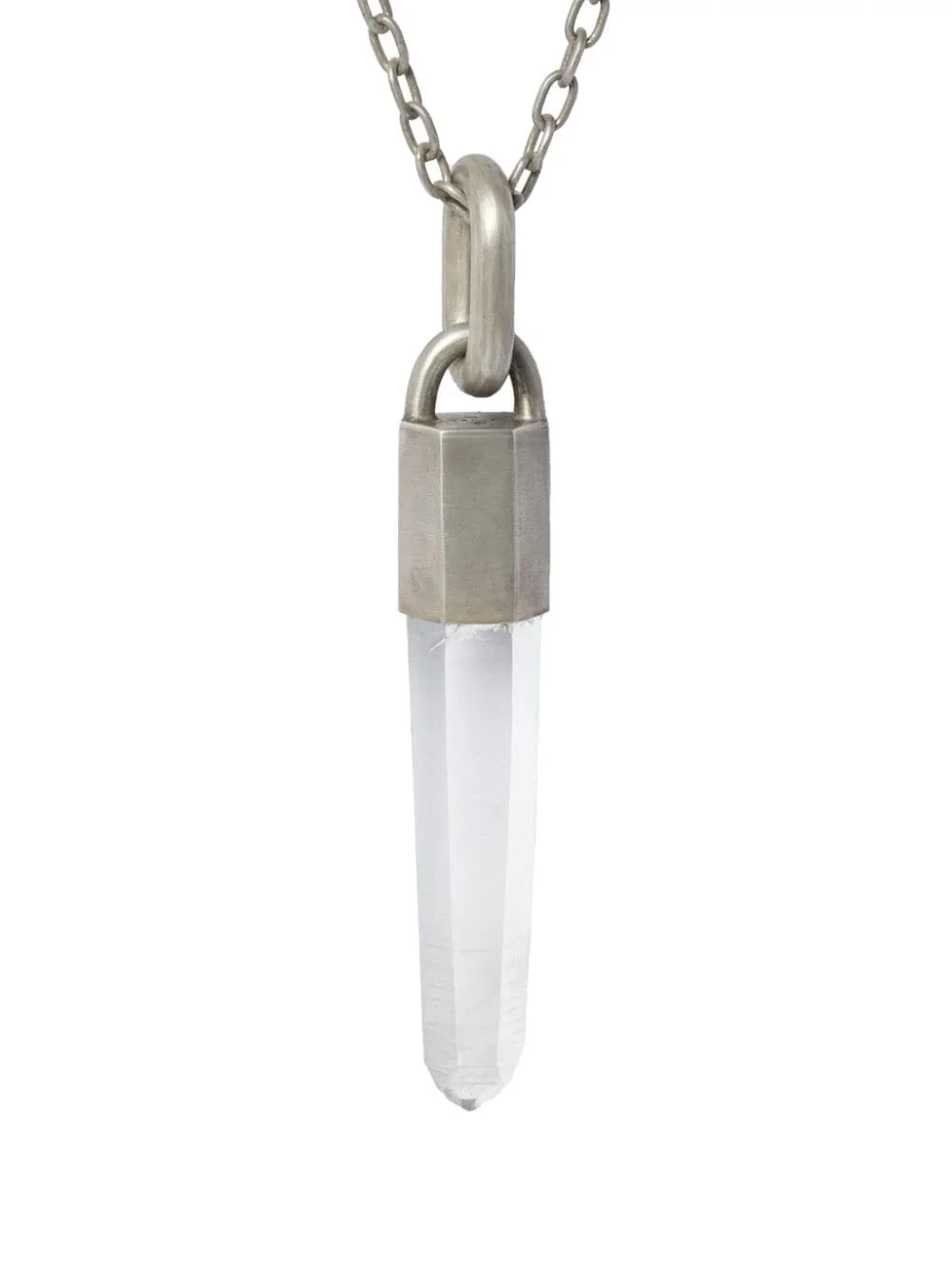Talisman necklace Highlights - Silver - Sterling silver - Matte finish - Cable-link chain - Gemstone pendant - Lemurian quartz - T-bar fastening - Normal everyday use and external agents may reduce the lustre of gemstones and gold surfaces. to maintain, use specific, non-abrasive products specially meant for cleaning jewellery. Imported SIZE & FIT Measurement Length when open 29.13 in(74 cm) PENDANT LENGTH 5.19 in(13.2 cm) PENDANT WIDTH 0.74 in(1.9 cm)