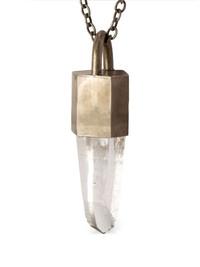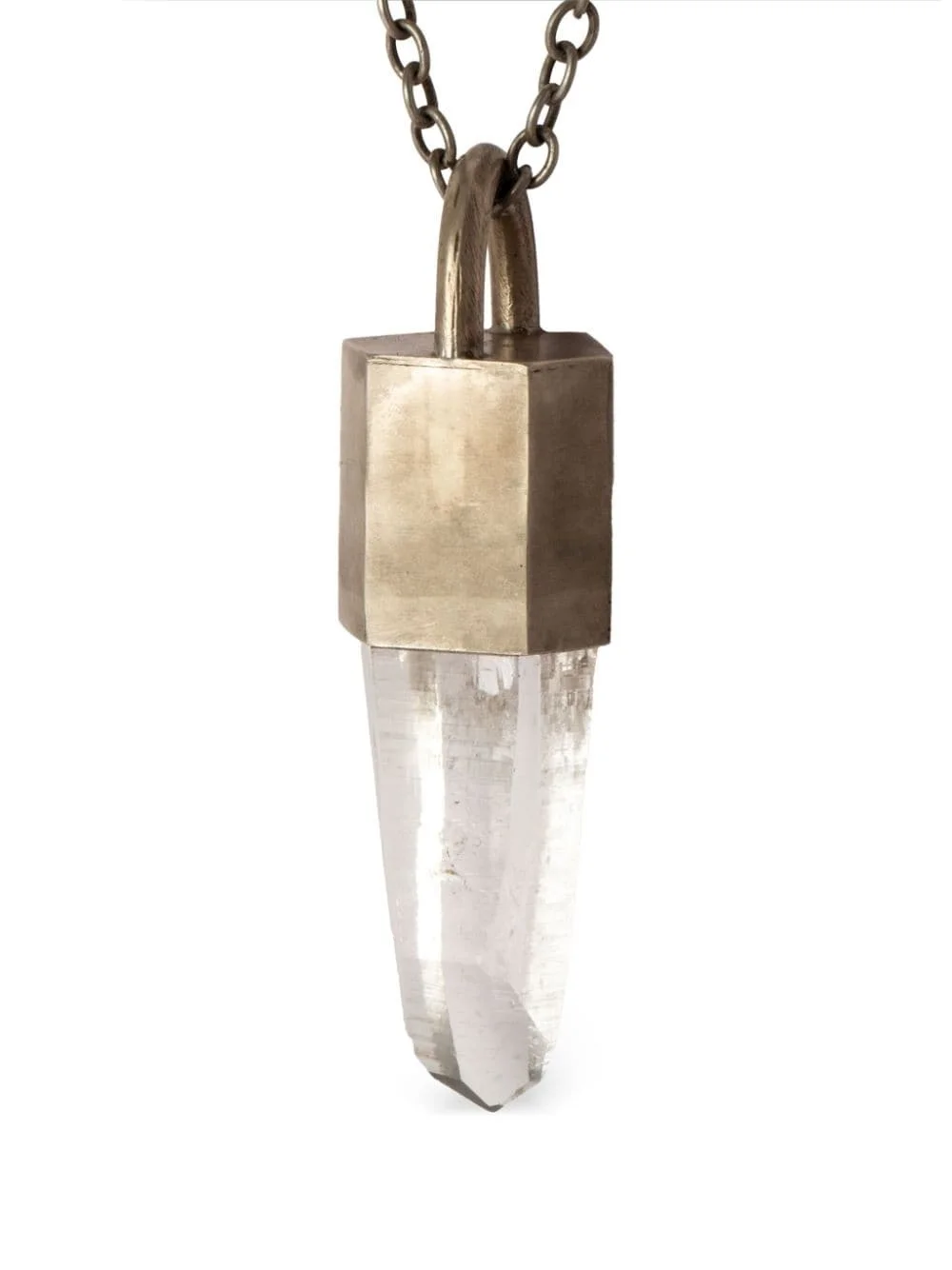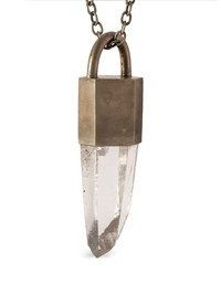 Talisman pendant necklace silver-tone/white sterling silver quartz stone pendant curb chain hook fastening Imported SIZE & FIT Measurement Length when open 29.13 in(74 cm) PENDANT LENGTH 4.52 in(11.5 cm) PENDANT WIDTH 1.22 in(3.1 cm)