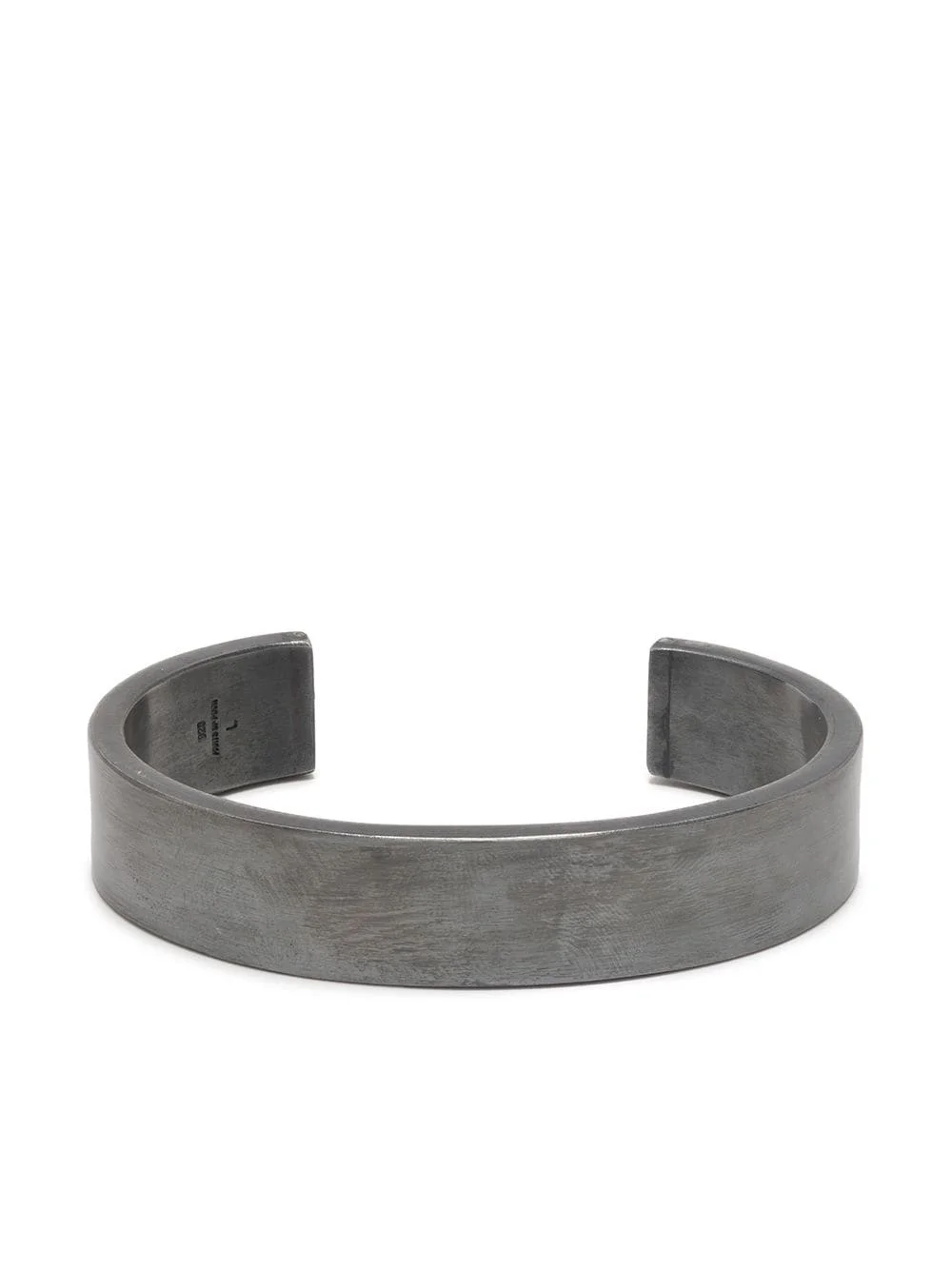 Ultra Reduction bracelet silver oxidised sterling silver open cuff design matte finish engraved logo Imported SIZE & FIT Model measurements Height 6 ft 1 in(1.86 m) Bust/Chest 36.61 in(93 cm) Hips 36.61 in(93 cm) Waist 29.92 in(76 cm)