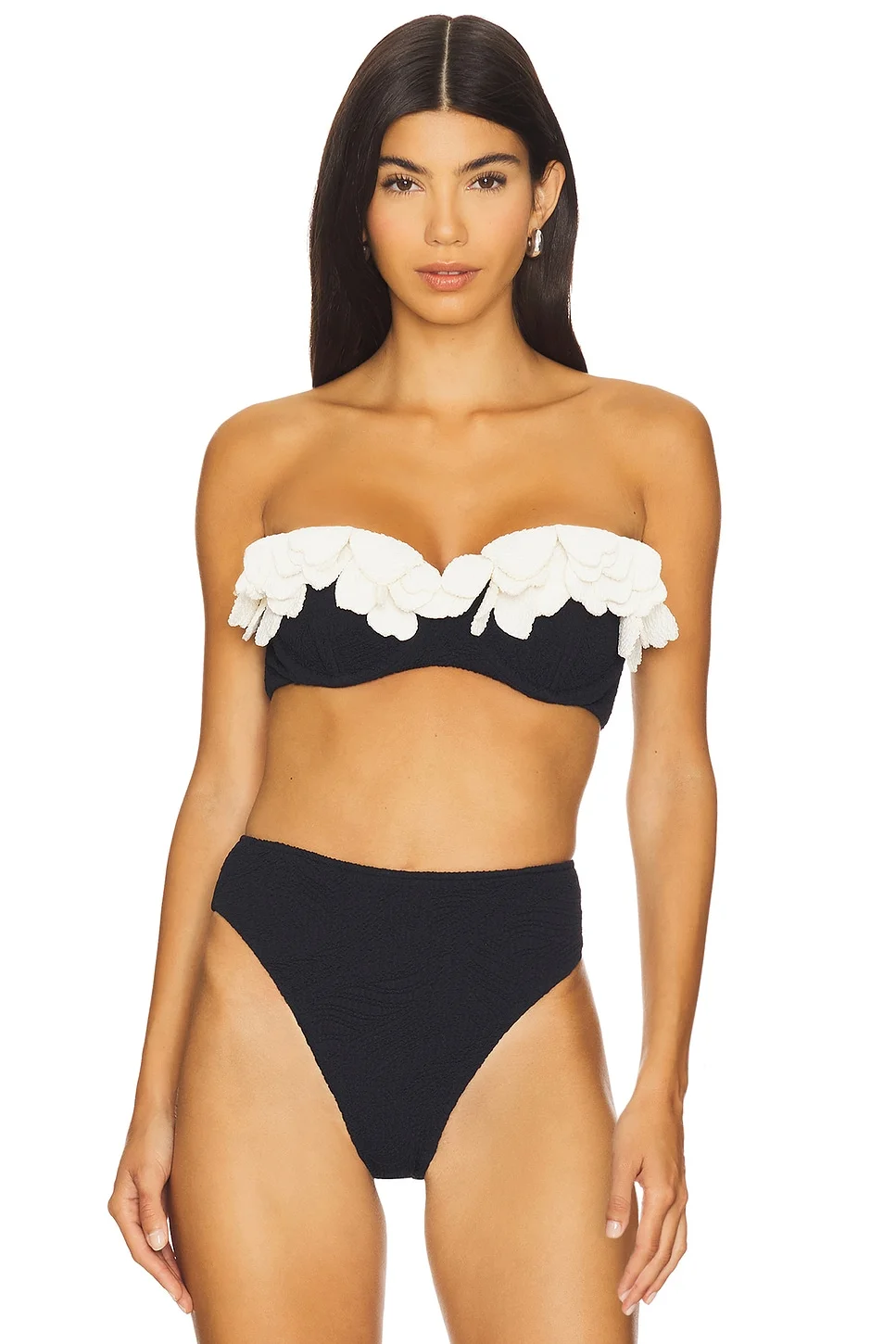 - Self: 97% polyamide 3% elastane Lining: 81% polyamide 19% elastane - Hand wash cold - Unpadded underwire cups - Back clasp closure.3D floral detailing at neckline - Midweight textured swimwear fabric - Item not sold as a set - Revolve Style No. PBTO-WX268 - Manufacturer Style No. TOB32349