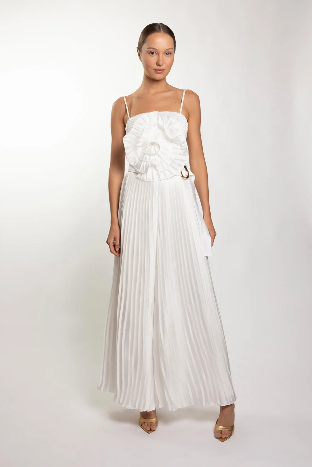 Flowy pleated satin pants fully lined for comfort, featuring a stylish belt with buckle and a discreet invisible zipper closure at the back. Made in Brazil. Model wears size 4. CAL32859