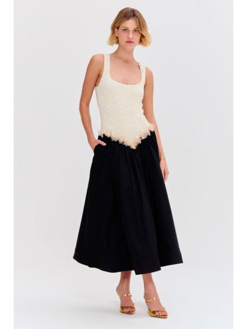 FLOWER CROCHET EMBROIDERED MIDI DRESS
