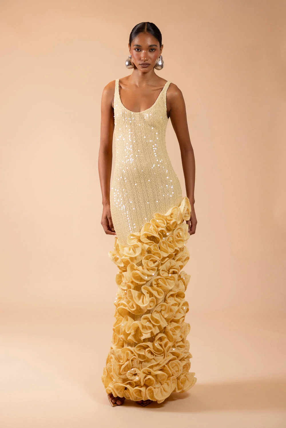 IARA CROCHET RUFFLE MAXI DRESS (RUNWAY)