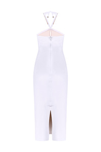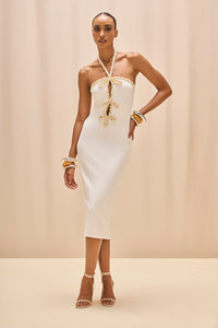 JADE KNIT EMBROIDERED HALTERNECK MIDI DRESS