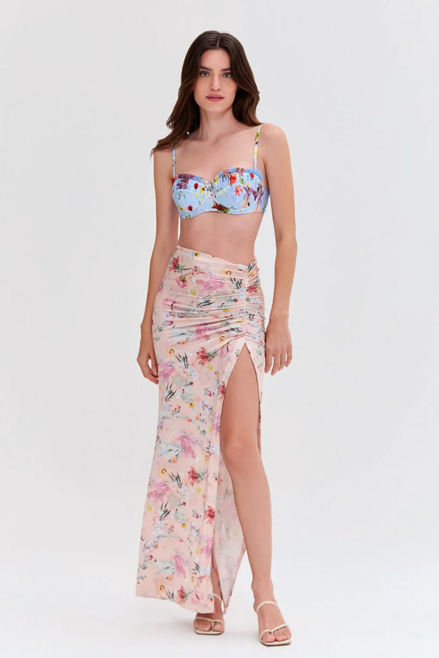 This beach skirt is features our Lily Flower print, perfect for spring. It has a deep front slit with rouching at the top Made in Brazil. 82% Polyamide. 18% Elastane. SPL31584