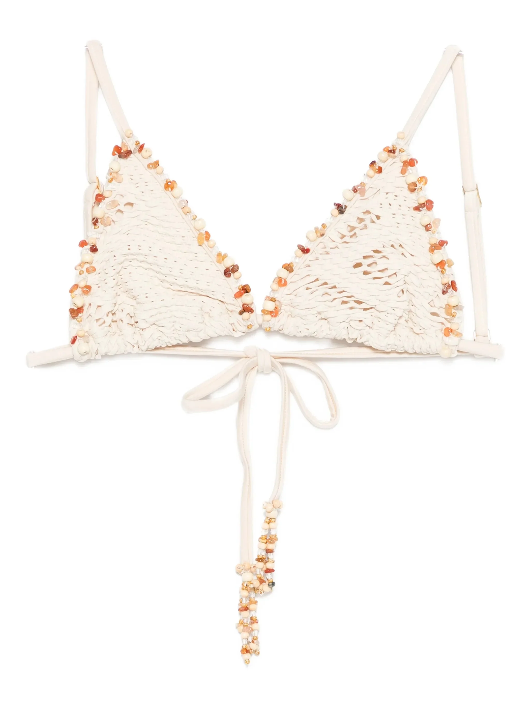 beige beaded detail tie fastening triangle cup Be mindful to try on swimwear over your own garments. - Color: NEUTRALS - Made in: Brazil - Designer Style ID: TOB32827 BEIGE Composition and care Polyamide: 85.0%, Elastane: 15.0%