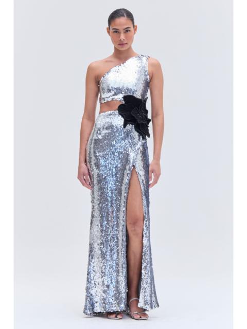 This dress was look 5 in our Spring 25 Runway Collection, it features a fitted bodice with a sweetheart, strapless neckline and side cut out detailing, flowy unlined skirt with a hand beaded butterfly detailing. Back clasp closure. EMBROIDERY TIME: 10 hours Made in Brazil. Bodice 97% Polyester 3% Elastane. Skirt 100% Polyester. VEL31560