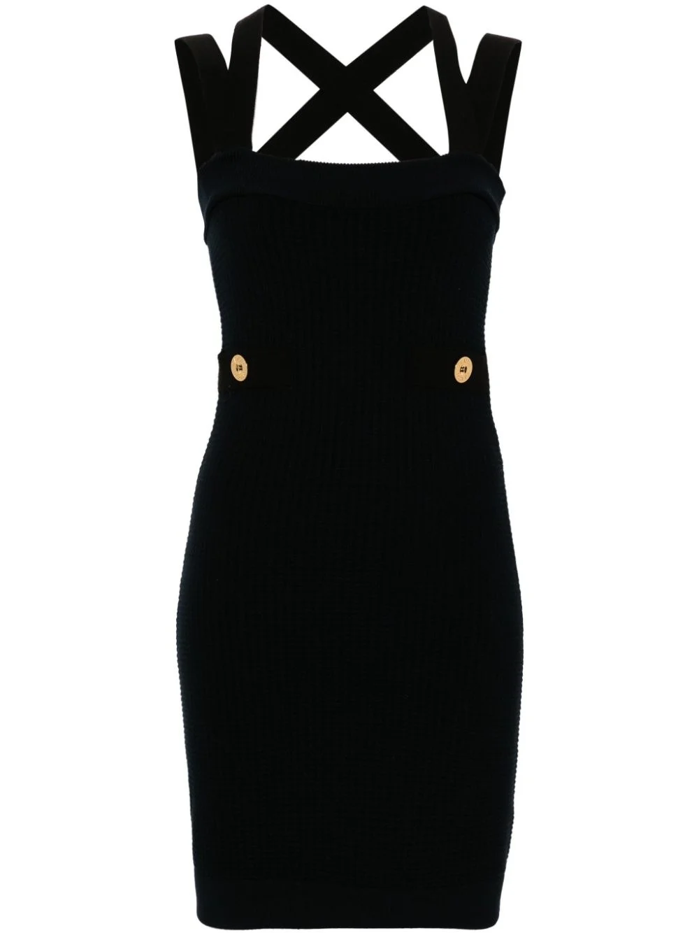double-strap 3D-knit mini dress Highlights - Midnight blue - 3d-knit construction - Double-strap design - Slip-on style - Square neck - Sleeveless - Faux pocket detail - Logo-debossed buttons - Rear criss-cross straps - Logo patch to the rear - Ribbed hem Imported Composition Viscose 72%, Polyester 28% SIZE & FIT Model measurements Height 5 ft 9 in(1.76 m) Bust/Chest 31.88 in(81 cm) Hips 35.43 in(90 cm) Waist 24.8 in(63 cm) FittingInformation Designed for a close fit throughout Made from a midweight non-stretch fabric, this piece offers minimal elasticity when worn This piece fits true to size – take your usual size