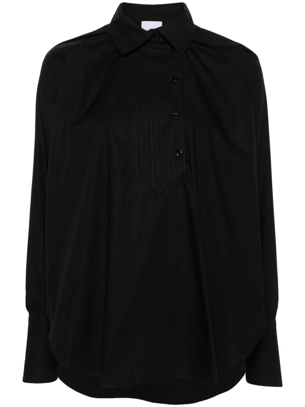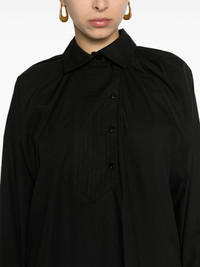 Artist cotton blouse Highlights - Black - Cotton - Poplin texture - Classic collar - Gathered neckline - Batwing long sleeves with buttoned cuffs - Decorative stitching - Curved hem - Short front button fastening Imported Composition Cotton 100% SIZE & FIT Model measurements Height 5 ft 11 in(1.8 m) Bust/Chest 33.07 in(84 cm) Hips 37 in(94 cm) Waist 25.59 in(65 cm) FittingInformation Designed to be unstructured, offering a loose fit throughout Made from a midweight non-stretch fabric This piece fits true to size – take your usual size Washing instructions Machine Wash