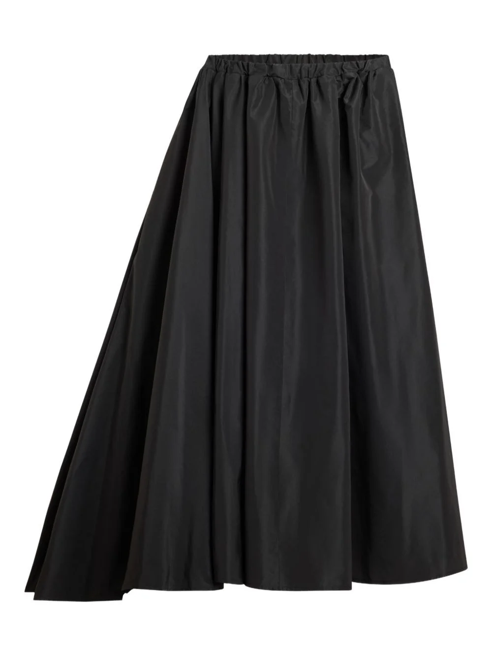 asymmetric midi skirt Highlights - Black - Asymmetric hem - Elasticated waistband - A-line shape - Side pockets - Recycled faille Imported Composition Recycled Polyester 100% Washing instructions Hand Wash