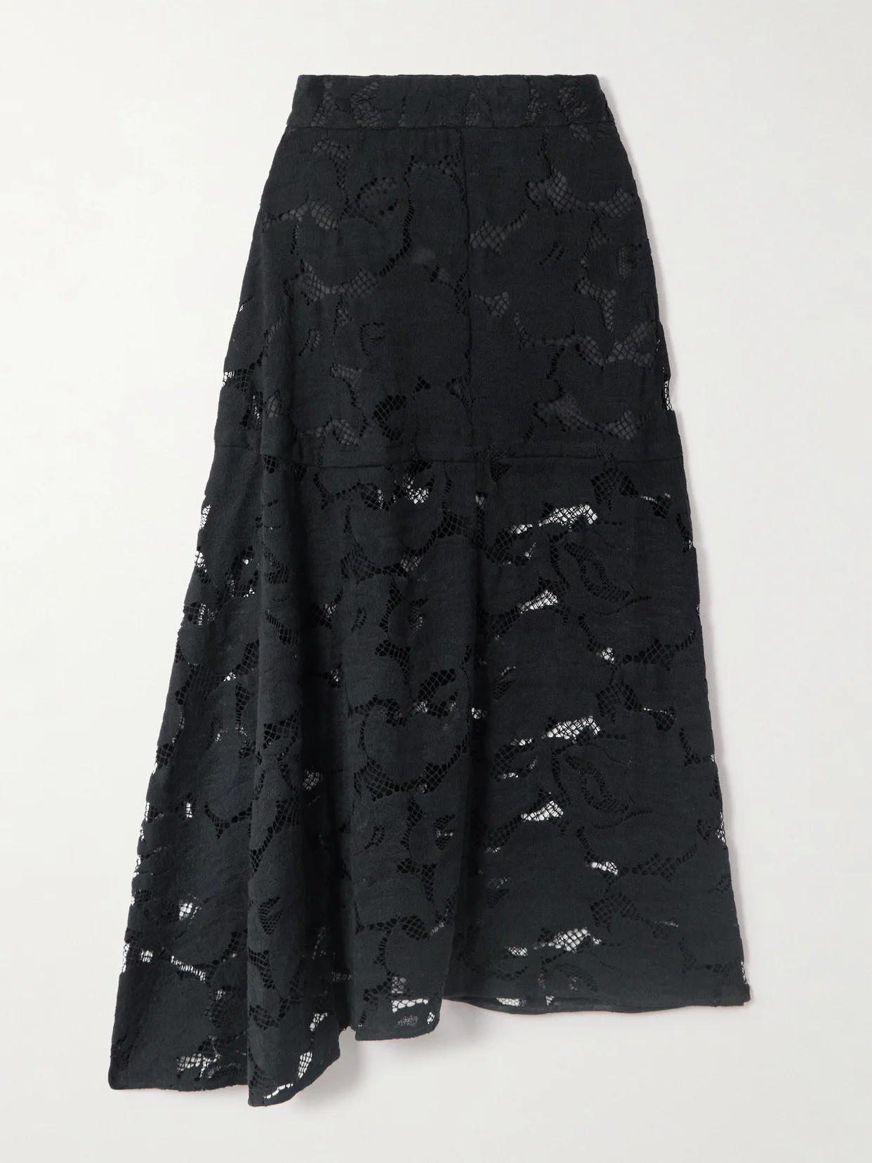 Asymmetric Organic Cotton-blend Lace Midi Skirt