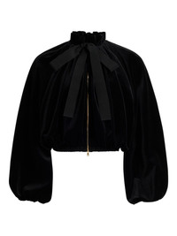 balloon-sleeve velvet jacket Highlights - Black - Velvet - Balloon sleeves - Gathered neckline - Zip fastening - Ribbon tie detail Imported Composition Lining: Viscose 100% Organic Cotton 100% Washing instructions Read Manufacturer Guidelines