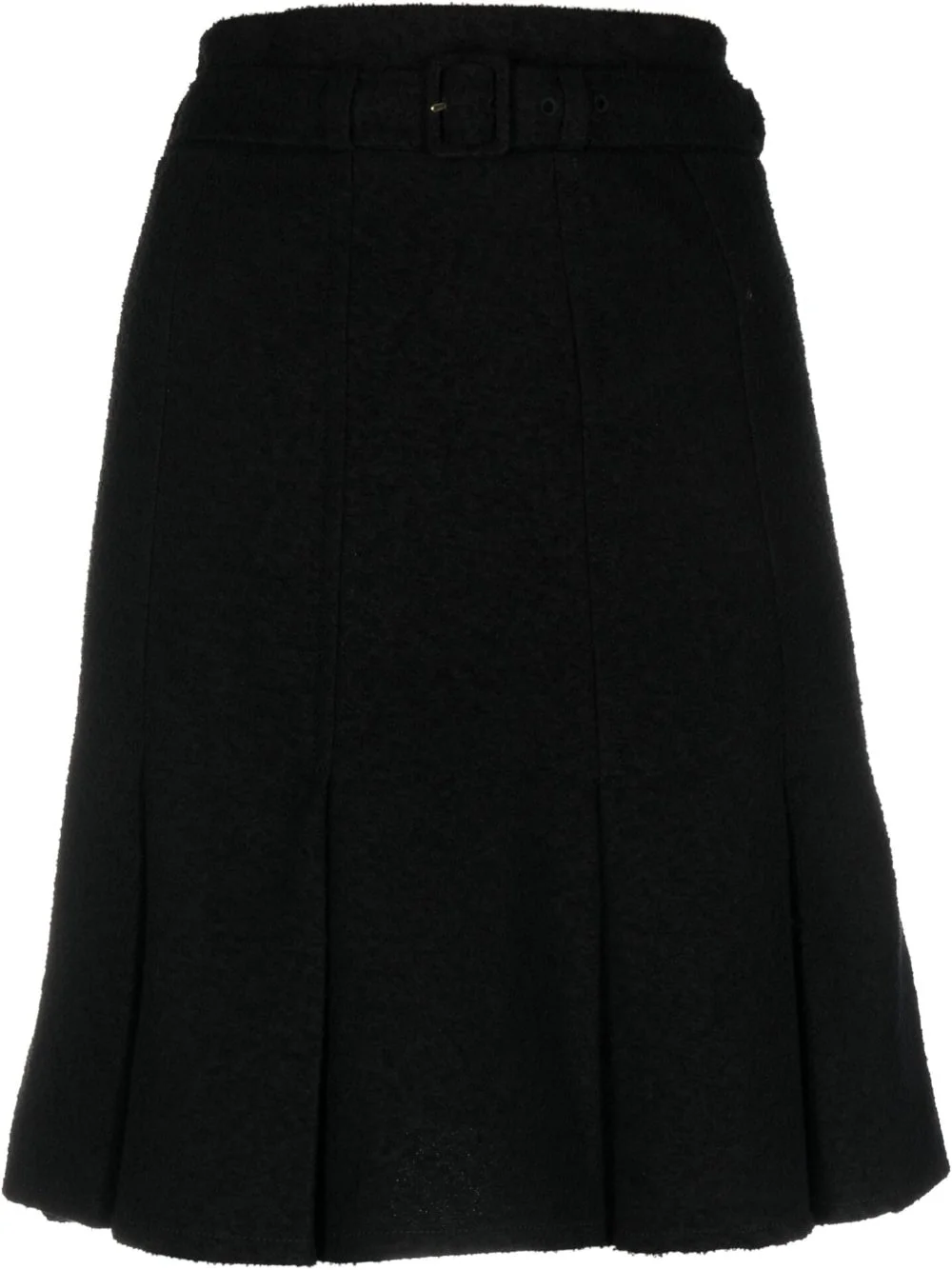 belted A-line skirt Imagined in a versatile black colourway, this Patou skirt is defined by its A-line silhouette enhanced with box-pleating to the hem. A tonal belt to the waist adds a sophisticated touch. Imported Composition Cotton 34%, Viscose 21%, Linen/Flax 20%, Polyamide 15%, Polyester 8%, Elastane 2% SIZE & FIT Model measurements Height 5 ft 11 in(1.8 m) Bust/Chest 31.49 in(80 cm) Hips 36.22 in(92 cm) Waist 25.59 in(65 cm) Washing instructions Dry Clean Only