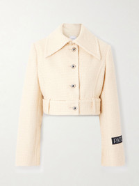 Patou's jacket is a modern take on archival styles from the '60s. Tailored from wool-blend tweed, it's framed by padded shoulders with a pointed collar and has a coordinating belt that defines the cropped hem. Style yours with high-rise denim or the matching mini dress. Size & Fit - Fits true to size, take your normal size - Designed for a slightly loose fit - Weighted, non-stretchy fabric - Model is 177cm/ 5'10" and is wearing a FR 36 Model measurements: - Bust: 85cm/ 33.5” - Waist: 63cm/ 25” - Hip: 90cm/ 35.5” Details & Care - Cream wool-blend tweed - Button fastenings through front - 96% wool, 4% polyamide; lining: 100% viscose - Fully lined - Dry clean