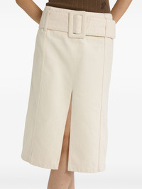 belted denim midi skirt Highlights - Light beige - Front buckle fastening - Front slit - Straight hem - Mid-length Imported Composition Organic Cotton 100%