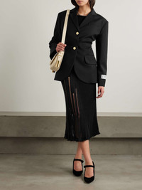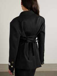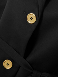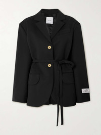 EDITORS'NOTES Patou's designs capture the effortless elegance of Parisian style. Tailored from stretch-wool twill, this blazer has notched lapels, logo-embossed buttons and a belt to cinch your waist. Wear yours with the label's jeans. SIZE & FIT Model measurements: - Fits true to size, take your normal size - Designed for a slim fit - Internal shoulder pads - Ties at the back for an adjustable fit - Mid-weight, non-stretchy fabric - Model is 177cm/ 5'10" and is wearing a FR 36 - Bust: 81cm/ 32” - Waist: 65cm/ 25.5” - Hip: 92cm/ 36.5” DETAILS & CARE - Black stretch-wool twill - Button fastenings through front - 97% virgin wool, 3% elastane; lining: 100% polyester - Dry clean