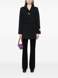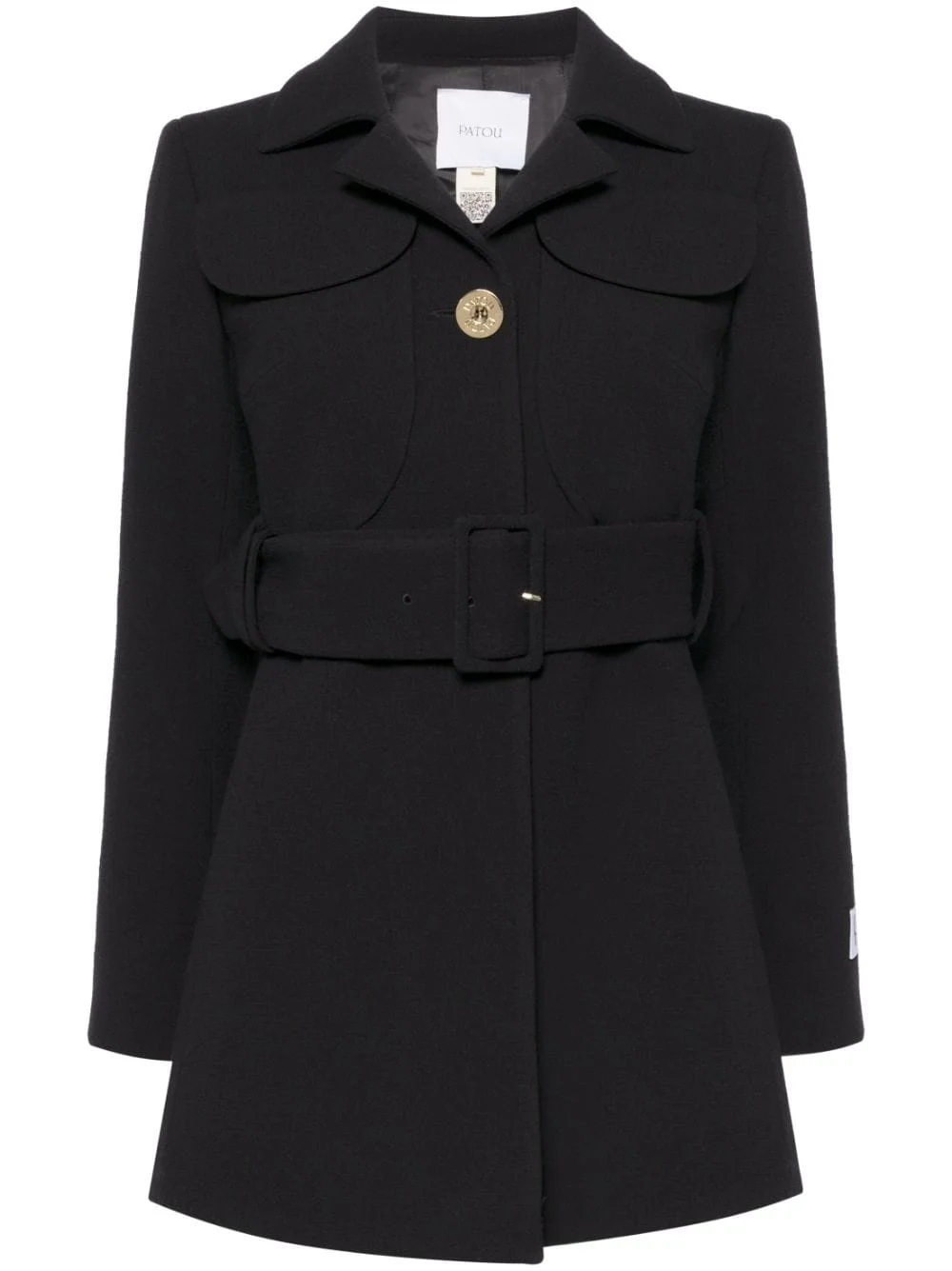 belted virgin-wool coat Following the brand's casual style, this coat from Patou features a relaxed design. Spun from black wool, it's adorned with a waist belt and gold-tone embossed buttons. Highlights - Black - Wool - Long sleeves - Notched lapels - Two chest flap pockets - Embossed gold-tone buttons - Buttoned cuffs - Belted waist - Logo patch at the sleeve - Straight hem Imported Composition Body: Wool 100% SIZE & FIT Model measurements Height 5 ft 9 in(1.75 m) Bust/Chest 31.88 in(81 cm) Hips 35.03 in(89 cm) Waist 23.22 in(59 cm) FittingInformation Designed to be unstructured, offering a loose fit throughout The internal shoulder pads offer a structured shape Made from a midweight non-stretch fabric This piece fits true to size – take your usual size