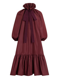 bow-detail ruffle-hem dress Highlights - Burgundy - Ruffled high neck - Balloon sleeves - Ribbon bow - Gathered detailing - Tiered ruffle hem Imported Composition Outer: Recycled Polyester 100% Lining: Cotton 100% Washing instructions Dry Clean Only