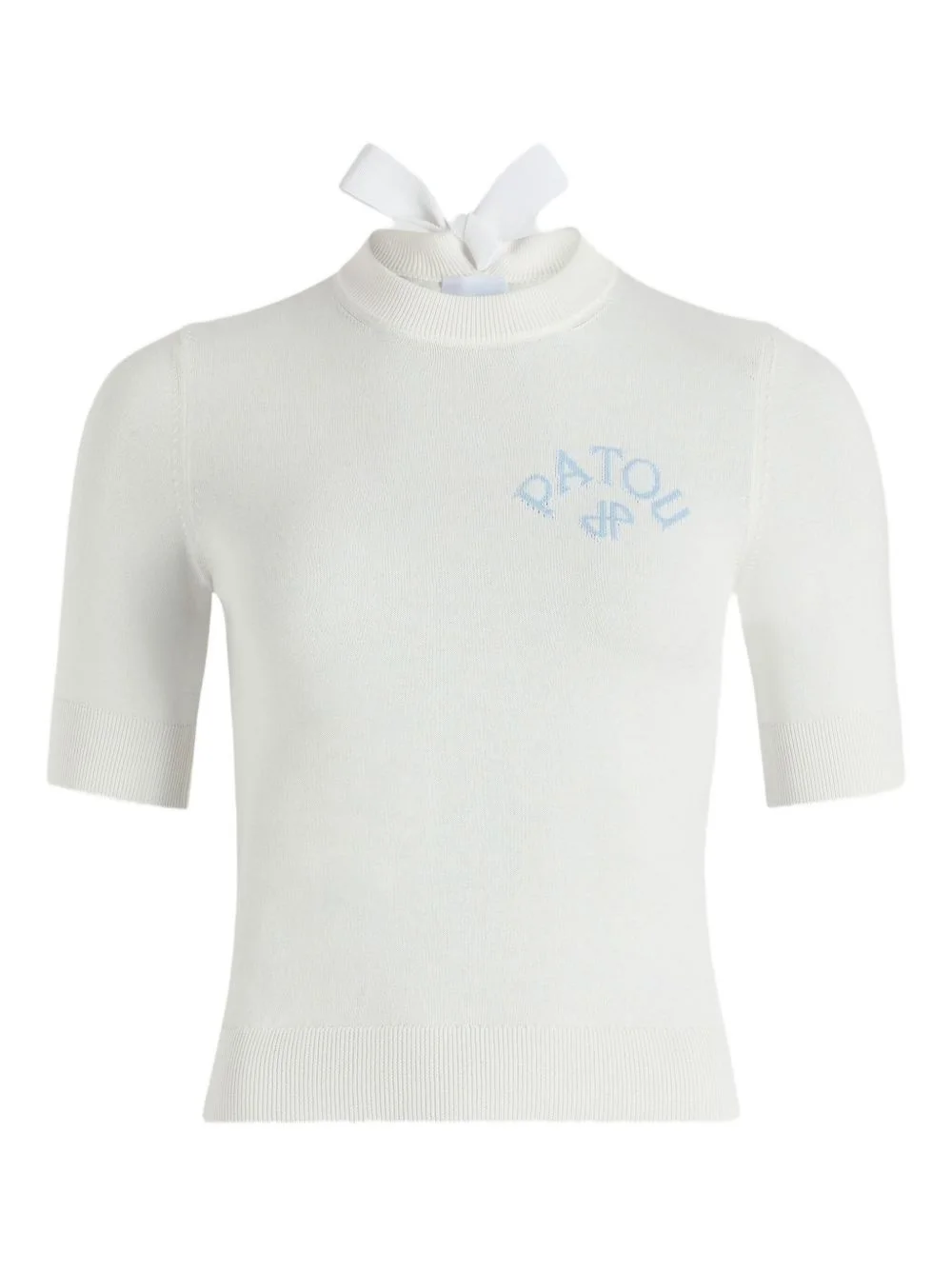 bow-detail sweater Highlights - White - Crew neck - Bow detail - Short sleeves - Ribbed knit - Embroidered logo at the chest - Cropped Imported Composition Organic Cotton 100%, Polyester 100% Washing instructions Dry Clean Only