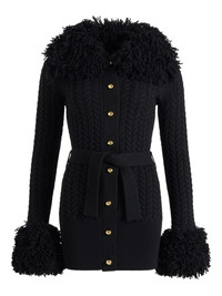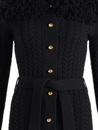 cable-knit frill-trimmed cardigan Highlights - Black - Cable knit - Frill trim - Self-tie belt - Long sleeves Imported Composition Merino 90%, Cashmere 10% Washing instructions Dry Clean Only