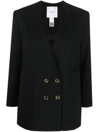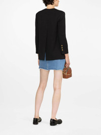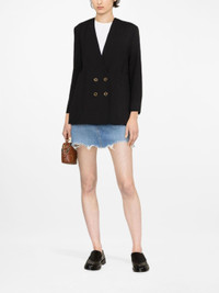black stretch-wool appliqué logo collarless front button fastening long sleeves two front patch pockets straight hem Size & Fit Model Measurements: Height: 1.75 m Bust/Chest: 84.0 cm Hips: 89.0 cm Waist: 61.0 cm Model wears size 36 Fabric and Care Designer Style ID: JA0020103999B Designer Colour: 999B BLACK Composition: Elastane 3%, Virgin wool 97% Washing instructions: Dry Clean Only Made in Romania