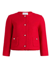 collarless tweed jacket Highlights - Red - Tweed texture - Button fastening - Patch pockets - Three-quarter sleeves - Logo-tab detail Imported Composition Lining: Viscose 100% Outer: Virgin Wool 100% Washing instructions Dry Clean Only