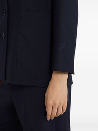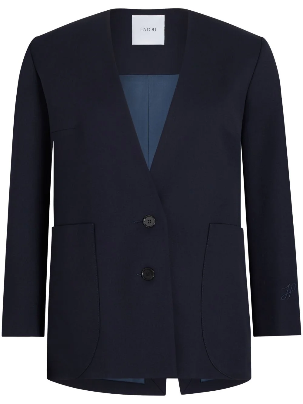 collarless twill jacket Highlights - Navy blue - Front button fastening - Two front patch pockets - Buttoned cuffs - Central rear vent Imported Composition Outer: RWS Virgin Wool 100% Lining: FSC Viscose 100% Washing instructions Dry Clean Only