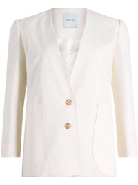 collarless twill jacket Highlights - White - Front button fastening - Two front patch pockets - Buttoned cuffs - Central rear vent Imported Composition Outer: RWS Virgin Wool 100% Lining: Viscose 100%