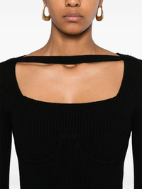 corset ribbed maxi dress Highlights - Black - Wool blend - Brushed effect - Ribbed knit - Corset style - Square neck - Long sleeves - Unlined - Straight hem - Long length Imported Composition Wool 80%, Nylon 20% SIZE & FIT Model measurements Height 5 ft 10 in(1.77 m) Bust/Chest 33.07 in(84 cm) Hips 37 in(94 cm) Waist 24.8 in(63 cm) FittingInformation Designed for a close fit throughout Made with a midweight knit, this piece offers some stretch