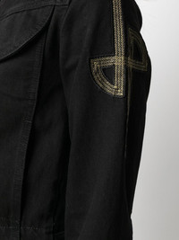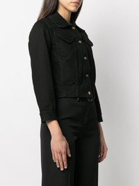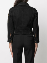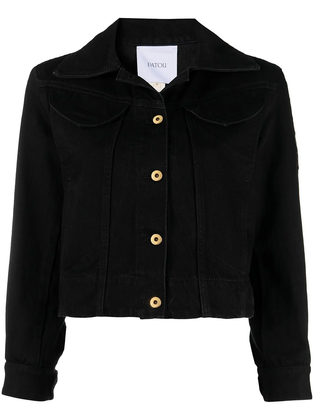 cropped organic denim jacket Highlights - Black - Organic cotton - Embroidered design - Classic collar - Buttoned cuffs - Cropped - Front button fastening - Long sleeves - Two chest flap pockets - Two side slit pockets Made in Italy Composition Organic Cotton 100% SIZE & FIT Model measurements Height 5 ft 10 in(1.77 m) Bust/Chest 33.07 in(84 cm) Hips 38.58 in(98 cm) Waist 23.62 in(60 cm) FittingInformation This piece fits true to size. We recommend you get your regular size Cut for a slim fit Made with a mid-weight non-stretch fabric