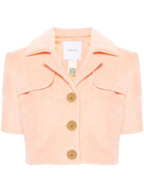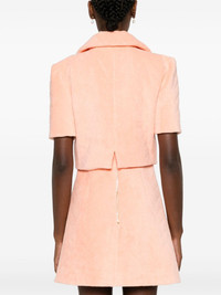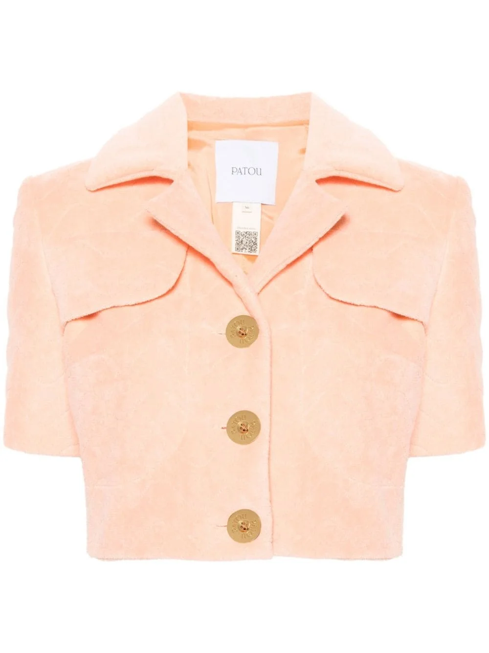 cropped quilted jacket Highlights - Coral orange - Cotton - Terry-cloth effect - Padded design - Quilted - Spread collar - Faux pocket detail to the chest - Short sleeves - Cropped - Central rear vent - Full lining - Authenticity qr code - Gold-tone logo-debossed buttons - Front button fastening Imported Composition Cotton 100% SIZE & FIT Model measurements Height 5 ft 10 in(1.77 m) Bust/Chest 29.92 in(76 cm) Hips 34.25 in(87 cm) Waist 23.62 in(60 cm) FittingInformation Designed for a slim fit that sits just away from the body offering a close yet comfortable fit The internal shoulder pads offer a structured shape Made from a midweight non-stretch fabric This piece fits true to size – take your usual size