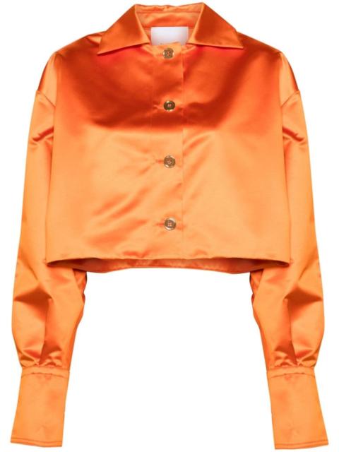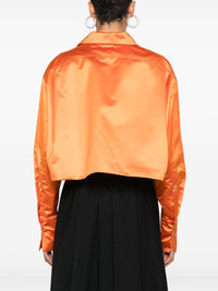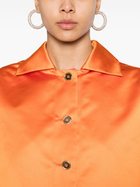 cropped satin shirt jacket This jacket showcases Patou's elegant Parisian flair. It boasts a duchess satin weave construction in a vibrant orange hue. Logo-engraved gold-tone buttons finish the look. Highlights - Tiger orange - Duchess satin weave - Spread collar - Drop shoulder - Long sleeves - Buttoned-cuff sleeves - Cropped - Straight hem - Front button fastening Imported Composition Polyester 100% SIZE & FIT Model measurements Height 5 ft 9 in(1.76 m) Bust/Chest 31.88 in(81 cm) Hips 35.43 in(90 cm) Waist 24.8 in(63 cm) FittingInformation Designed for a boxy fit, intended for a loose fit throughout Cropped in length Made from a midweight non-stretch fabric This piece fits true to size – take your usual size