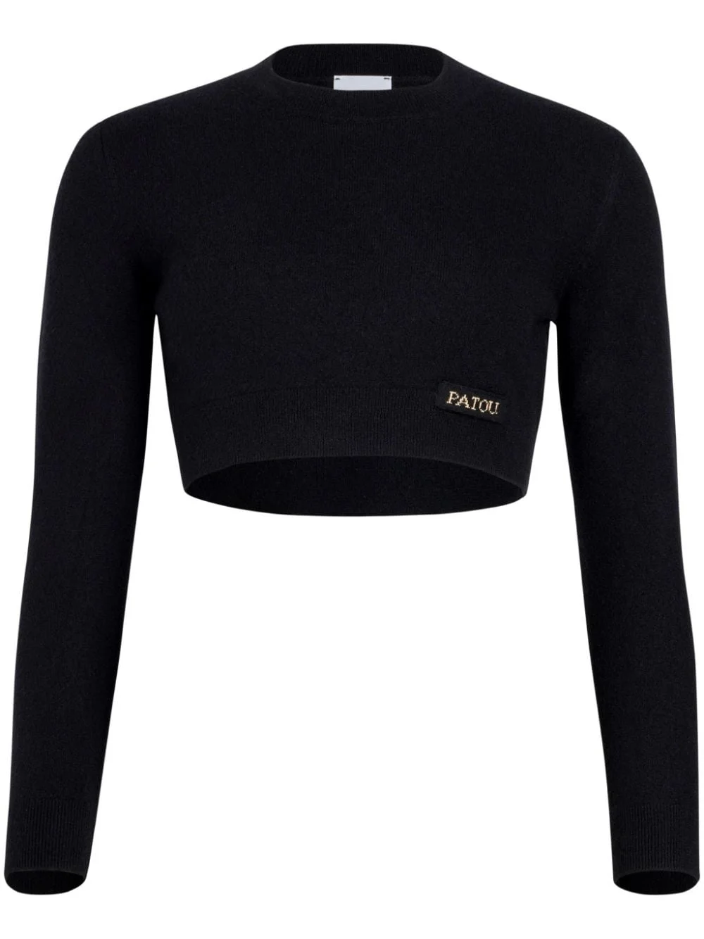 cropped sweater Highlights - Black - Wool/cashmere - Fine knit - Applique logo - Crew neck - Long sleeves - Ribbed trim - Straight hem - Cropped Imported Composition Cashmere 100%, Wool 100%