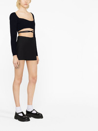 cropped tie-fastening top French label Patou's timeless yet bold take on garments punctuates its SS23 edit, as shown by this black knitted top. Spun from a delicate blend of wool and cashmere, this piece is cut for a contemporary cropped length whilst fastening around the waist with tie straps. Made in Italy Composition Wool 90%, Cashmere 10% SIZE & FIT Model measurements Height 5 ft 9 in(1.75 m) Bust/Chest 31.88 in(81 cm) Hips 33.85 in(86 cm) Waist 24.01 in(61 cm) FittingInformation This piece fits true to size. We recommend you get your regular size Cut for a slim fit Made with a mid-weight fabric Washing instructions Hand Wash