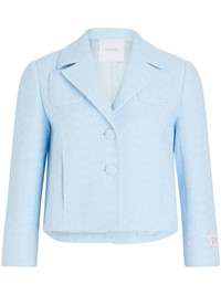 cropped tweed jacket Highlights - Light blue - Front button fastening - Chest patch pocket - Two side slit pockets - Buttoned cuffs Imported Composition Outer: Organic Cotton 100% Lining: Viscose 100%