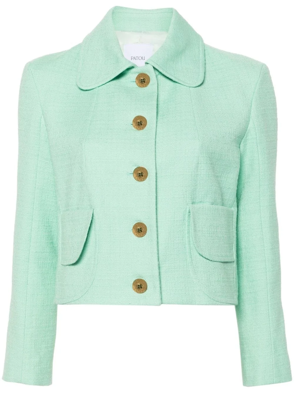 cropped tweed jacket Highlights - Turquoise blue-green - Cotton blend - Tweed - Spread collar - Long sleeves - Split cuffs - Two side patch pockets - Straight hem - Full lining - Front button fastening Imported Composition Cotton 97%, Polyamide 2%, Elastane 1% SIZE & FIT Model measurements Height 5 ft 9 in(1.75 m) Bust/Chest 34.64 in(88 cm) Hips 36.61 in(93 cm) Waist 26.37 in(67 cm) FittingInformation Designed for a slim fit that sits just away from the body offering a close yet comfortable fit Cropped in length Made from a midweight stretch fabric, this piece offers elasticity and flexibility when worn This piece fits true to size – take your usual size