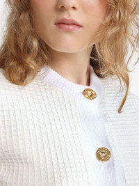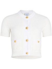 cropped waffle-knit cardigan Highlights - White - Front button fastening - Two front patch pockets - Round neck - Short sleeves Imported Composition Organic Cotton 100%